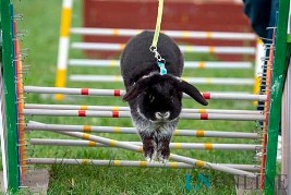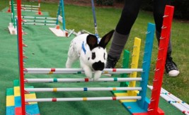 Kanin-Hop ist ein Sport zur gemeinsamen Beschäftigung von Mensch und Kaninchen. Entgegen langläufiger Annahme sind Kaninchen sehr lernfähige Tiere.