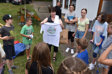 Nachdem jeder seine eigene Pizza kreiert, im Pizza-Ofen gebacken und verspeist hatte und viele Hüpfburg-Sprünge weiter, neigte sich der Abenteuertag dem Ende zu. Es gab noch ein Abschieds-Eis und jeder Teilnehmer erhielt ein T-Shirt mit seinem Namen darauf. Für die Kinder und Jugendlichen war das noch eine tolle Überraschung zum Schluss.